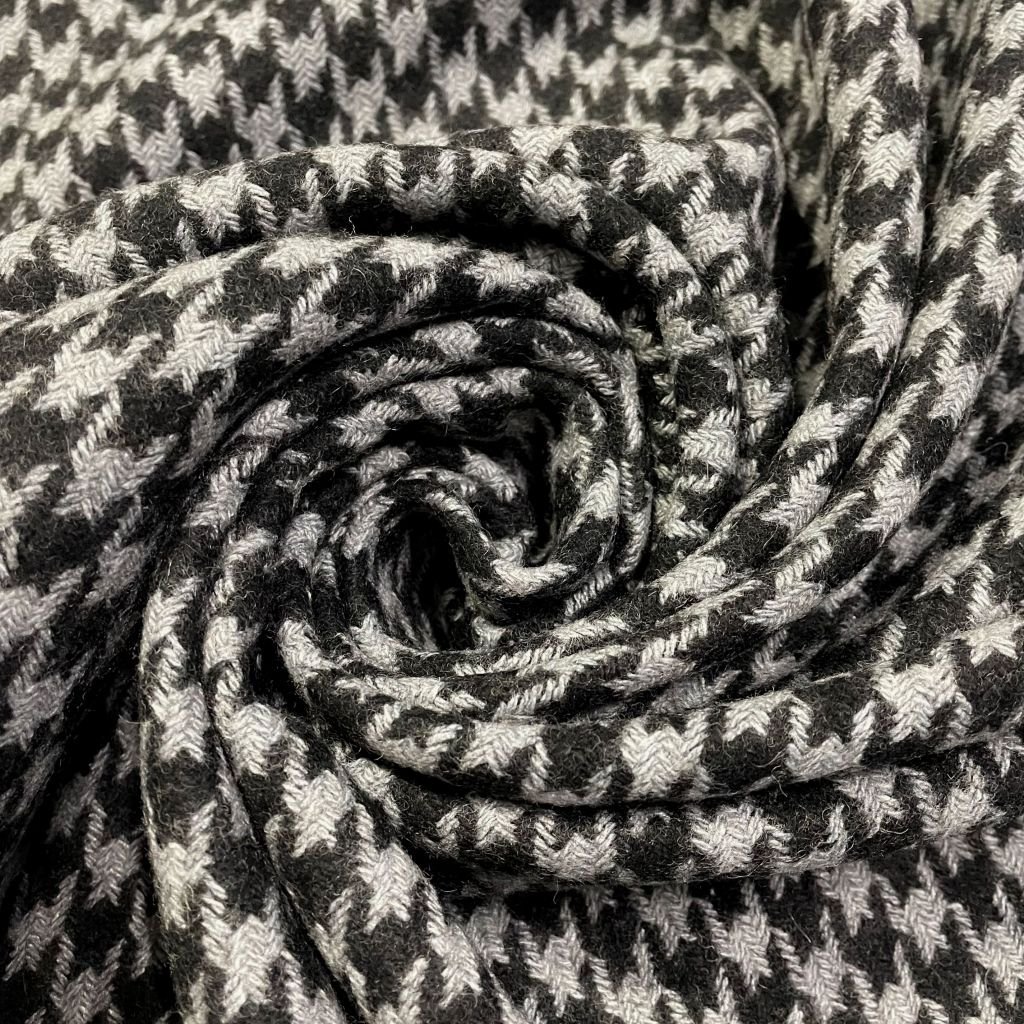 Костюмная ткань рисунком гусиная лапка.. Вечная классика. Ткань имеет неоднородную структуру, сложный состав - все это делает ее незаменимой при создании стиля деловой женщины. Ткань прекрасно подходит для пошива легкой верхней одежды, жакетов, костюмов,платьев и.т.п. Из ткани также можно создавать и отдельные детали в изделии - тесьмы, цветы, декоративные элементы. С этой тканью Вы сможете творить бесконечно. Не сложная в уходе.Практически не мнется. Сушить желательно в расправленном виде