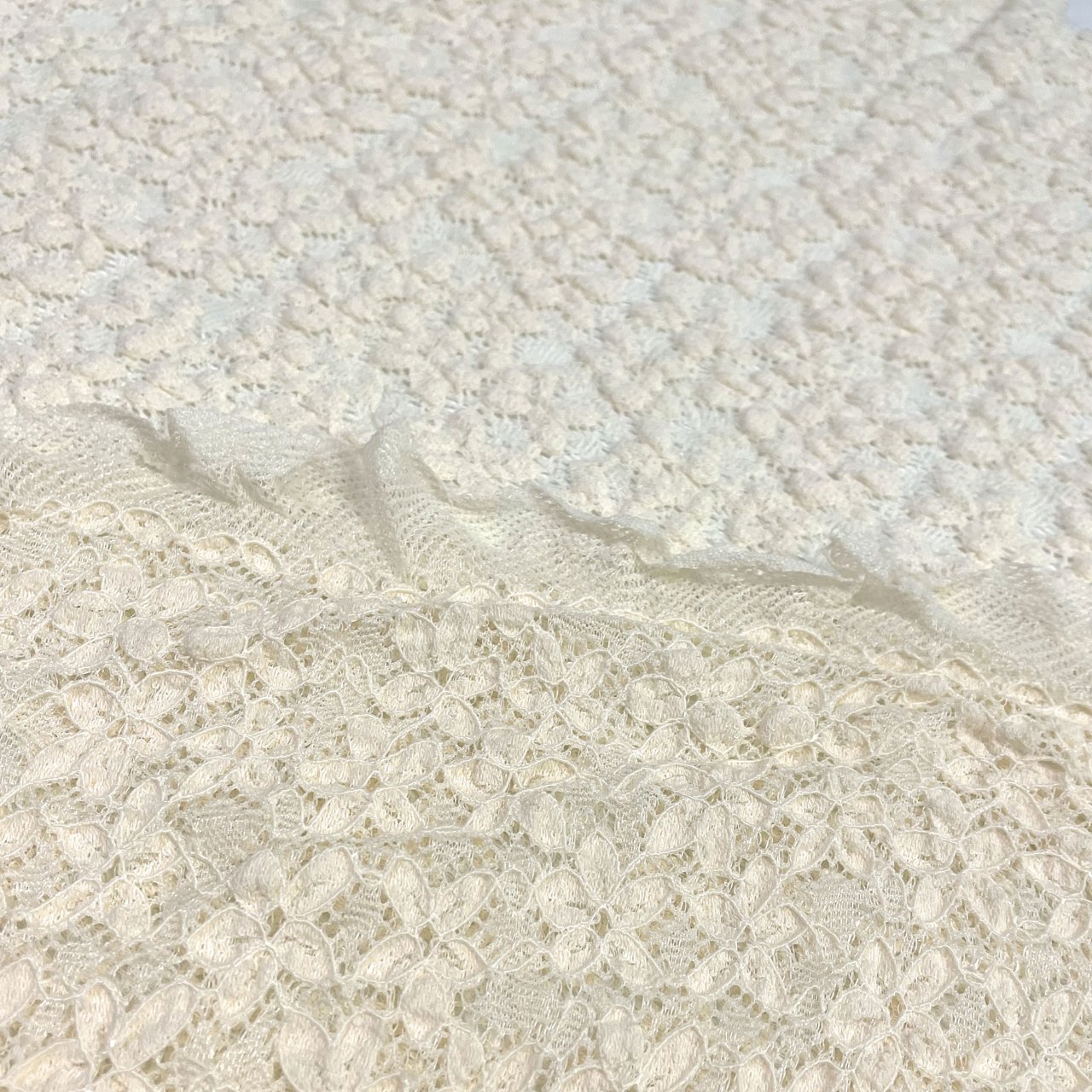 Стрейчевое кружевное полотно имеет очень хорошую растяжимость. Ткань имеет чуть более объемную лицевую сторону. Выткана единым полотном с цветочными мотивами. Хорошо стирается и практически не требует утюжки. Подходит для пошива праздничных нарядов для особых случаев, повседневной одежды, нижнего белья. Так же применяется для отдельных элементов платья.